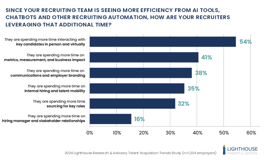 Theoretically, these hours represent a tranche of time that can be spent talking to candidates, building relationships and better aligning with bigger business initiatives and strategies.