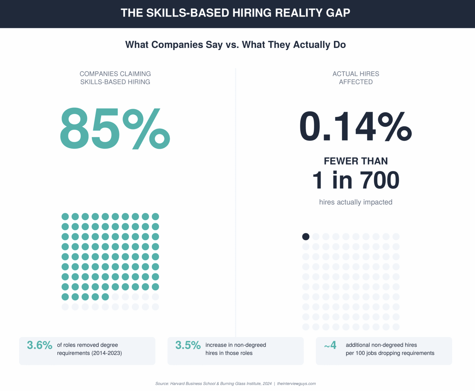 The real change we’ll see has nothing to do with making hiring “skills first,” but rather, increasing the emphasis on “evidence first” hiring, particularly for experienced or exempt positions. Empirical evidence and tangible outcomes are becoming more important than the inherent ambiguity and aphoristic concept of “employee engagement,” which means structured evaluations, clearer success criteria and designing a workforce with more emphasis on future impact rather than past experience