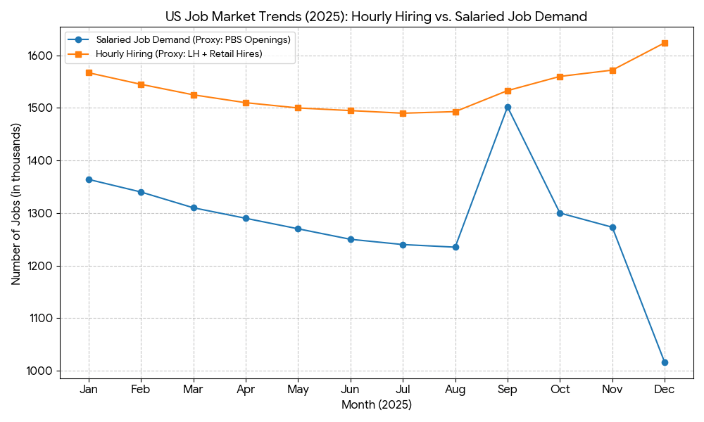 Simply put, the sectors that are the most heavily reliant on frontline workers and high volume hiring can’t find enough warm bodies to keep pace with increased demand, while exempt, professional “white collar” workers are facing a knowledge economy that’s already starting to crash.